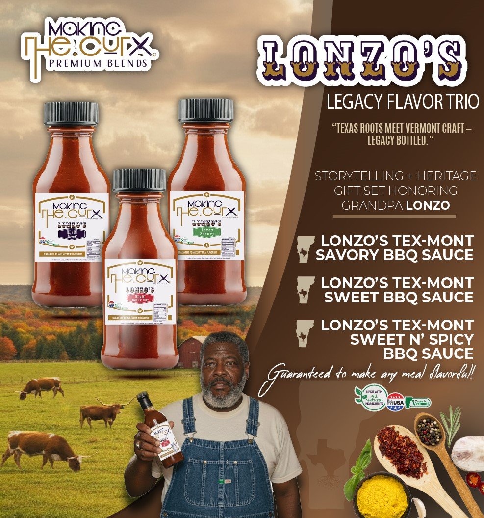 Our Lonzo’s Legacy Flavor Trio celebrates the roots of Making The CuTX — inspired by Grandpa Lonzo and crafted with Vermont ingredients that give each sauce its signature depth.